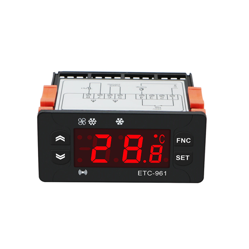 Контроллер Elitech ETC-961 разработан для управления статическим воздухоохладителем, охлаждающей камерой со статической системой или холодильным прилавком. Он оснащен температурным датчиком для контроля температуры в охлаждаемом пространстве и реле на 8А, которое отвечает за включение и отключение компрессора. Возможна функция естественной оттайки, осуществляемая путем временной остановки компрессора. Устройство питается от сети с напряжением 220В и частотой 50Гц, поддерживает работу с температурными датчиками NTC или PTC. В комплекте идет датчик для точного измерения температуры.