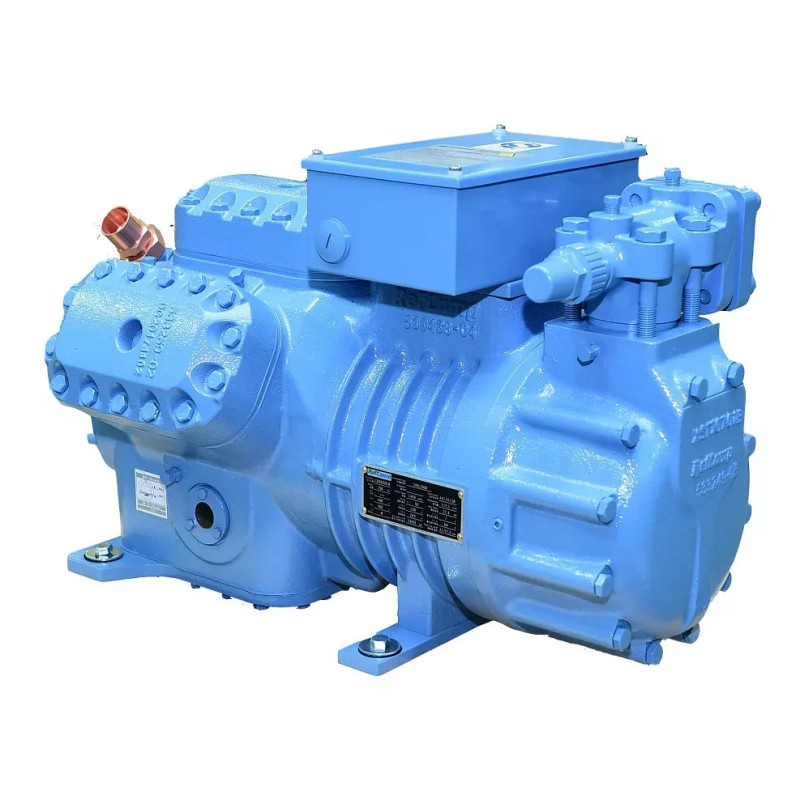 Модели с 4, 6, 8 цилиндрами могут быть оснащены ступенчатым регулятором производительности 100-50-0% или 100-75-50-0%. Совместимость со всеми известными хладагентами, значительно расширяет сферу применения. Конструкция поршневой системы классическая с клапанными досками из специальной стали.
